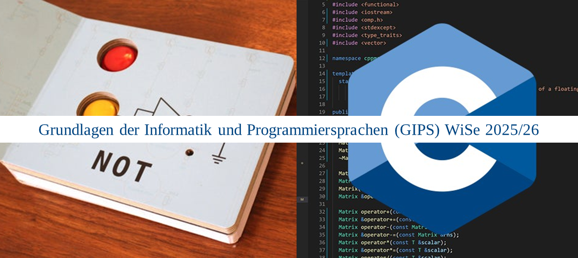Das Modul "Grundlagen der Informatik und Programmiersprachen (GIPS) vermittelt grundlegende Kenntnisse über den Aufbau und die Funktionsweise von Computern sowie die Grundlagen der Programmentwicklung. Zu den Inhalten gehören die Einführung in die Boolesche Algebra und Aussagenlogik, die für das Verständnis digitaler Schaltungen und logischer Operationen essenziell sind. Die Studierenden erlernen die verschiedenen Zahlendarstellungen und den Umgang mit Variablen und Operatoren.